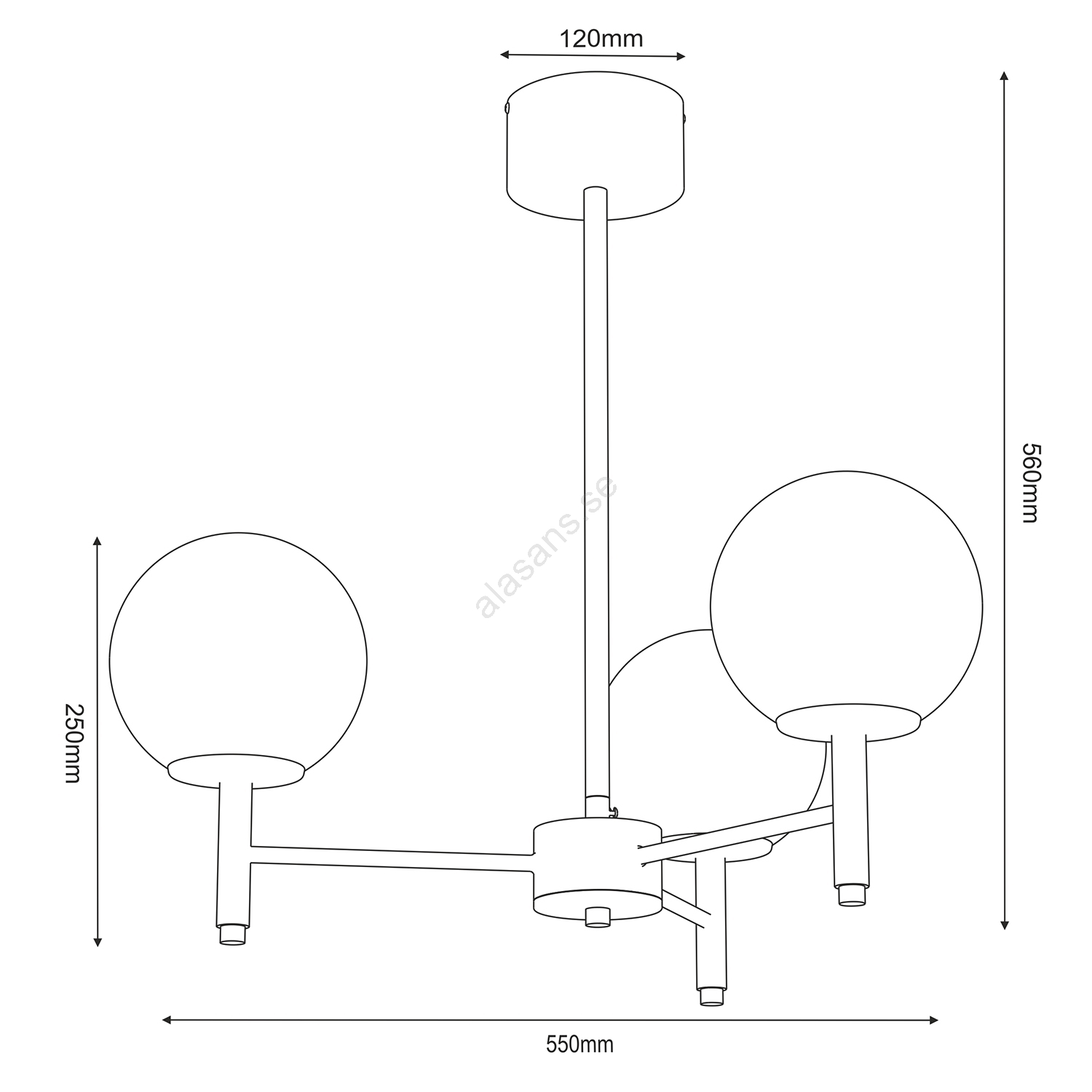 Pendelkrona AWINION 3xE27/15W/230V vit/guld/svart | Alasans