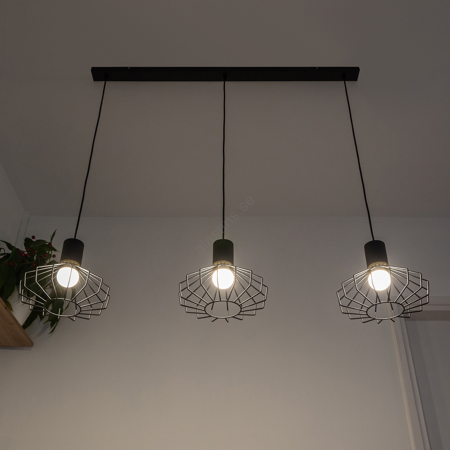 Pendellampa med kabel SOLANO 3xE27/15W/230V svart/guld kännetecknar snygg och funktionell design. En glödlampa med E27 lock är lämplig för lampan. Här kan du köpa andra glödlampor till förmånliga priser. Du kommer att få ett intressant tillägg till ditt hem.