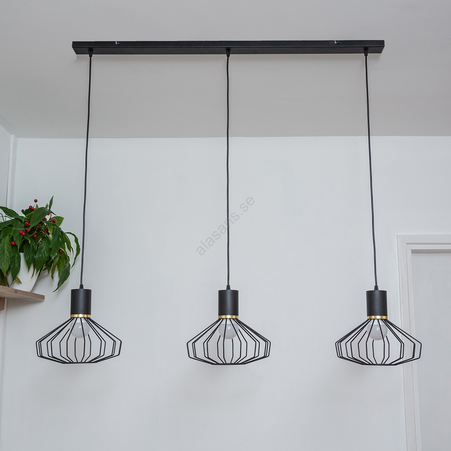 Pendellampa med kabel SOLANO 3xE27/15W/230V svart/guld | Alasans