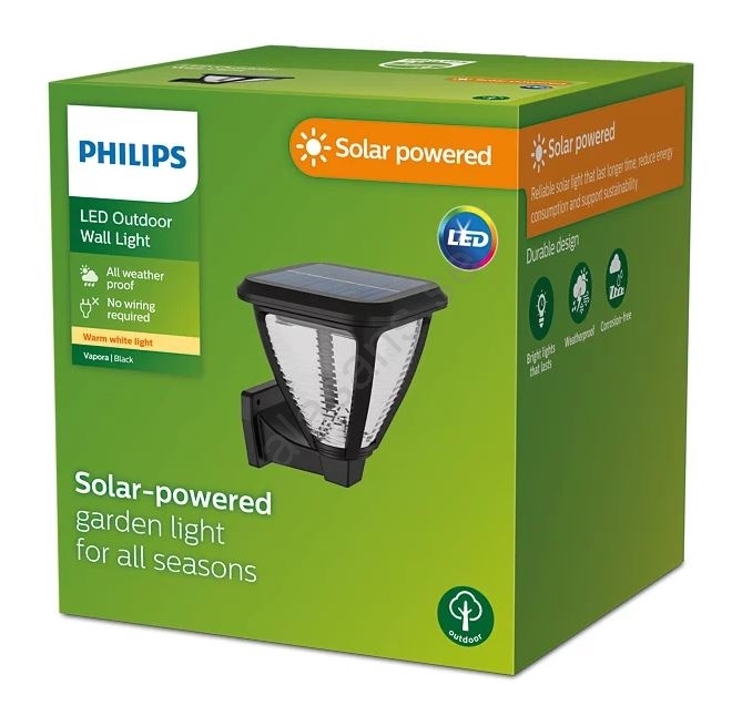 Philips VAPORA LED solcellsvägglampa 1,5W 3,7V 1500mAh IP44 | Alasans