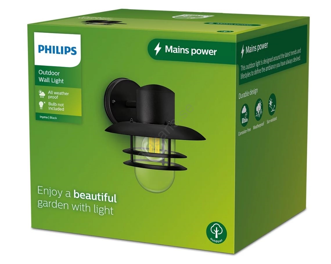 Philips - Vägglampa för utomhusbruk INYMA 1xE27/25W/230V IP44 kännetecknar snygg och funktionell design. En glödlampa med E27 lock är lämplig för lampan. Här kan du köpa andra glödlampor till förmånliga priser. Du kommer att få ett intressant tillägg till ditt hem.