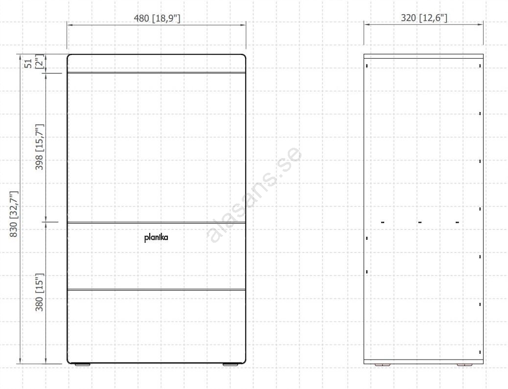 • Mått på eldstad: 83 x 48 x 32 cm.