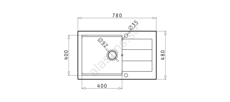 • Vändbar vask – diskhoens balja kan placeras både till vänster och höger.
