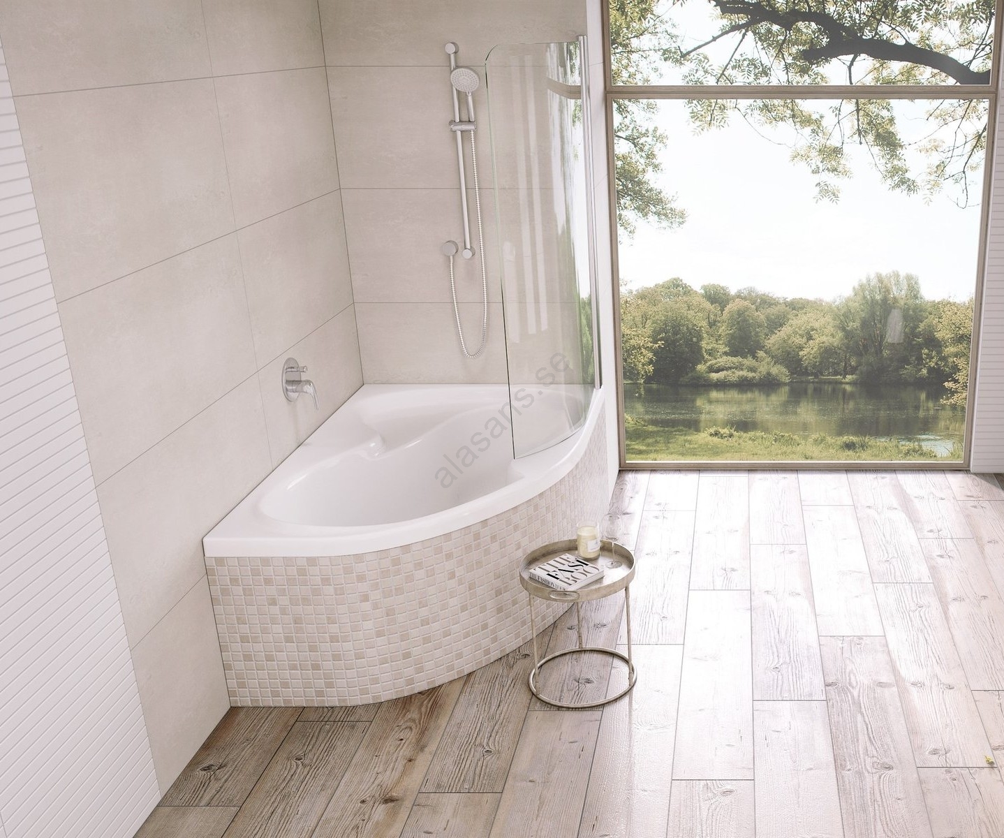 • Badkaret kan kompletteras med en badkarsvägg, vilket skapar en elegant och funktionell duschhörna.