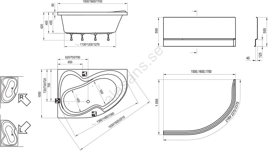 Asymmetriska badkar, Badkar, Badrum, Hörnbadkar, Ravak, Varumärken