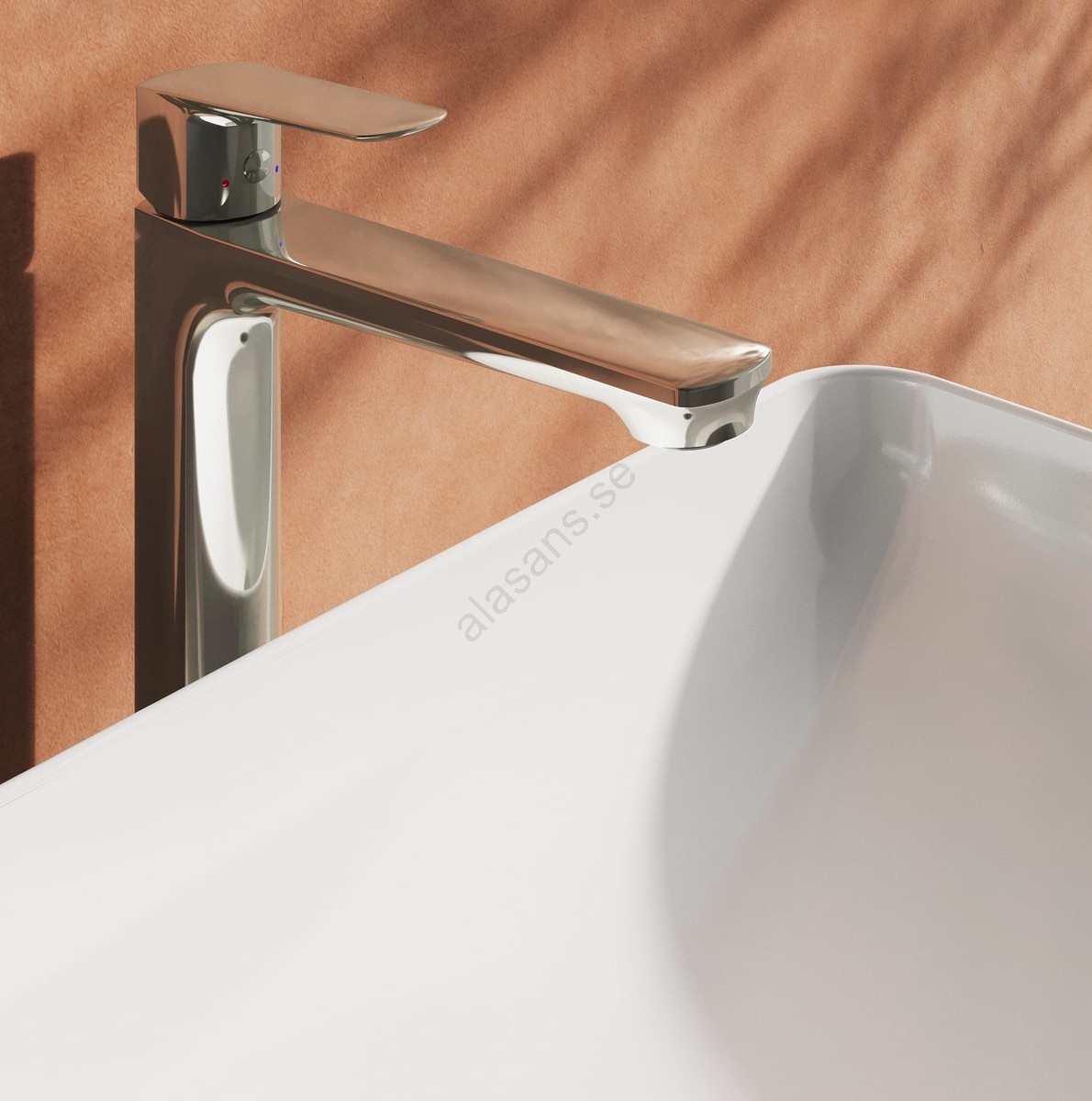 • Tvättställsblandaren Life i blankkromad yta har en extra förlängd höjd på 280 mm, perfekt för tvättställ på bänkskiva.