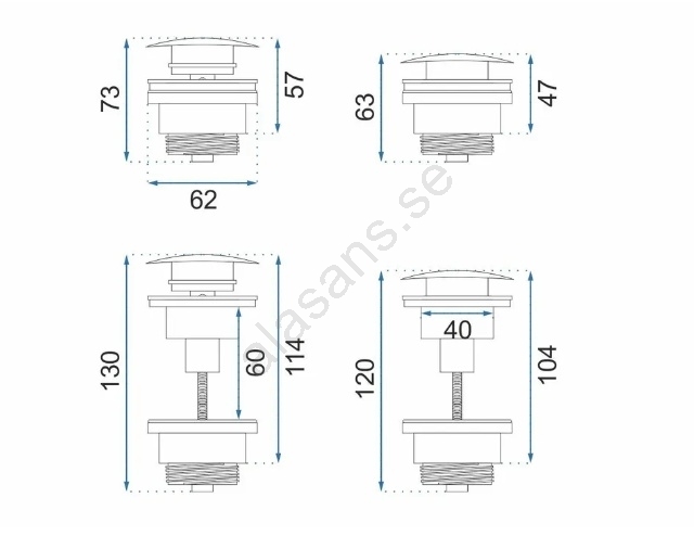 REA-A4100 - Bottenventil CLICK-CLACK för handfat, Ø 6,4 cm, blank svart | Alasans