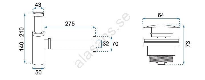 REA-A5215 - Tvättställssifon med CLICK-CLACK bottenventil, Ø 6,4 cm, matt svart | Alasans