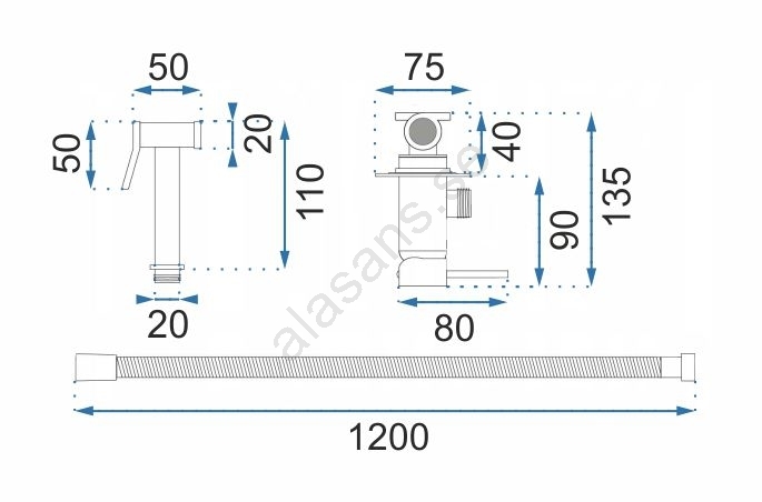 REA-B8979 - Bidetblandare med handdusch för inbyggnad LUNGO, guld | Alasans