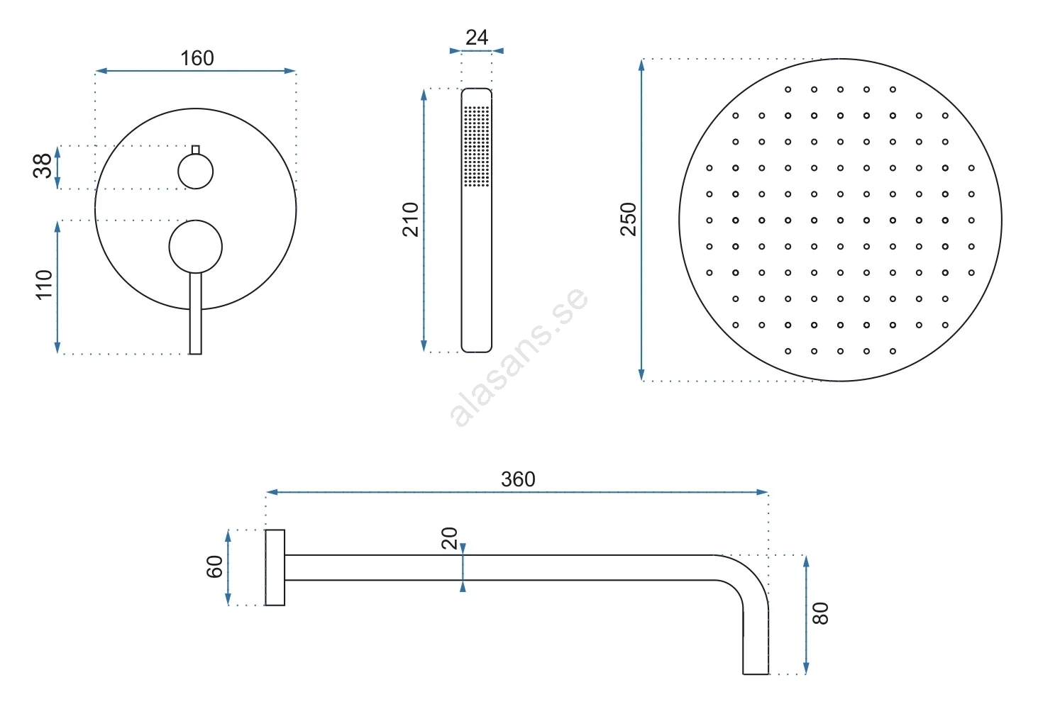 REA-P4110 - Duschset med infälld blandare LUNGO i guld | Alasans