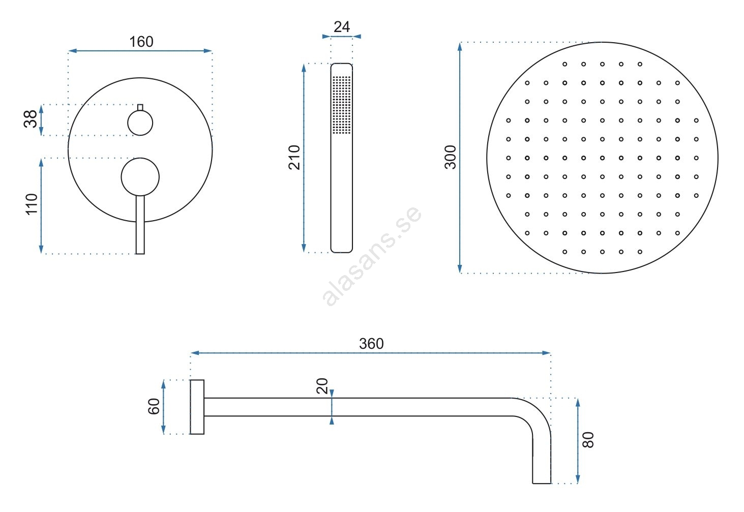 REA-P8007 - Duschset med infälld blandare LUNGO i blank krom | Alasans