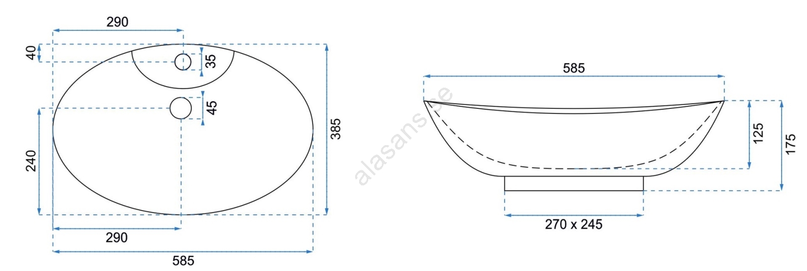 REA-U0160 - Tvättställ för bänkskiva ROSA 38,5x58,5 cm keramik/blank vit | Alasans