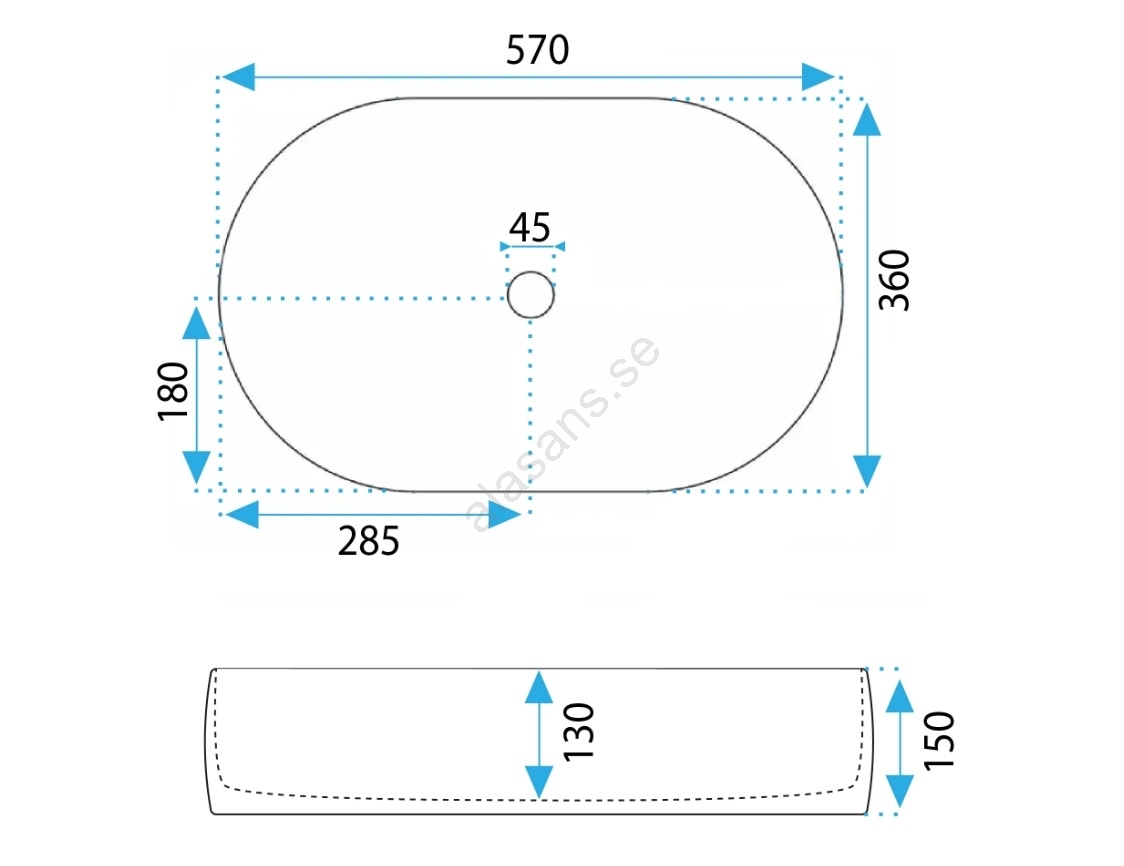 REA-U0600 - Ovanpåliggande tvättställ ALMA 36x57 cm, keramik, blank vit | Alasans