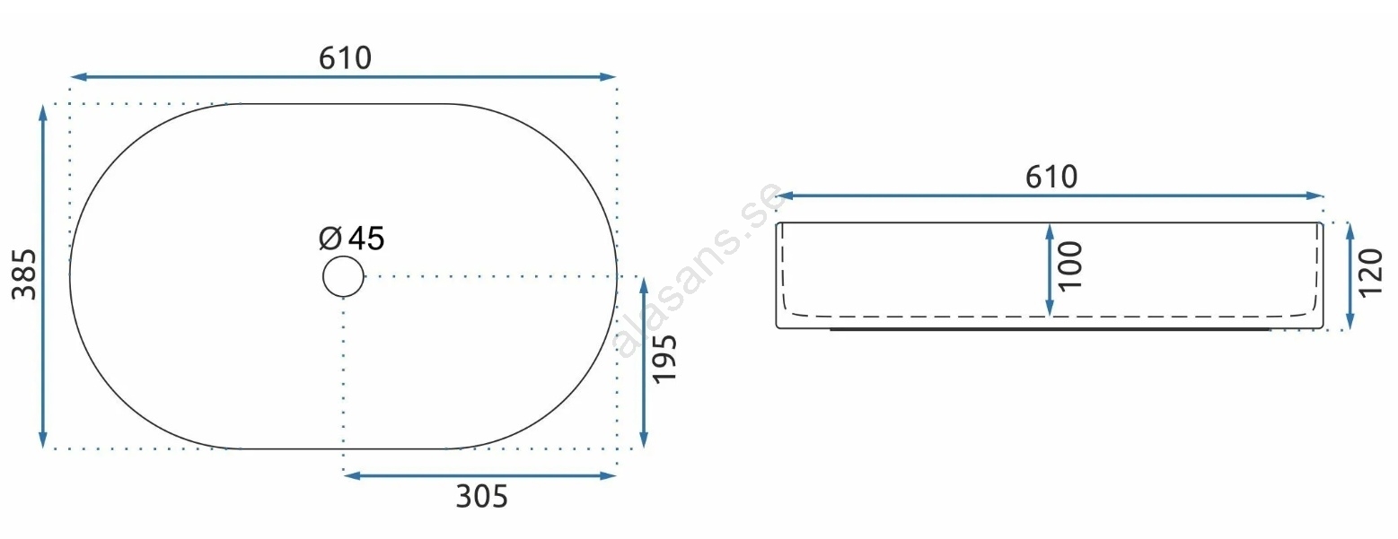 REA-U1055 - Tvättställ för bänkskiva NADIA 38,5x61 cm keramik/blank vit | Alasans