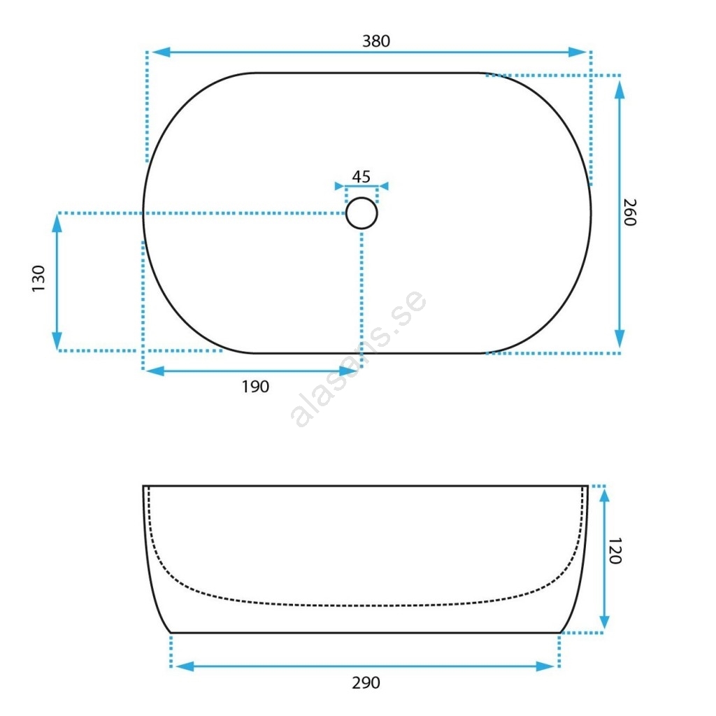 REA-U3322 - Tvättställ för bänkskiva AMELIA MINI 26x38 cm keramik/glänsande vit | Alasans