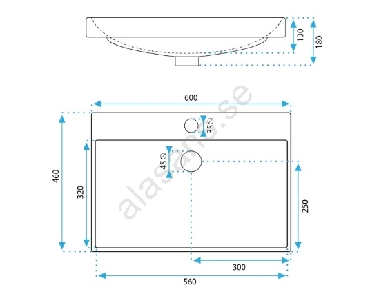 REA-U3326 - Infällt tvättställ MANDY 46x60 cm keramik/blank vit | Alasans