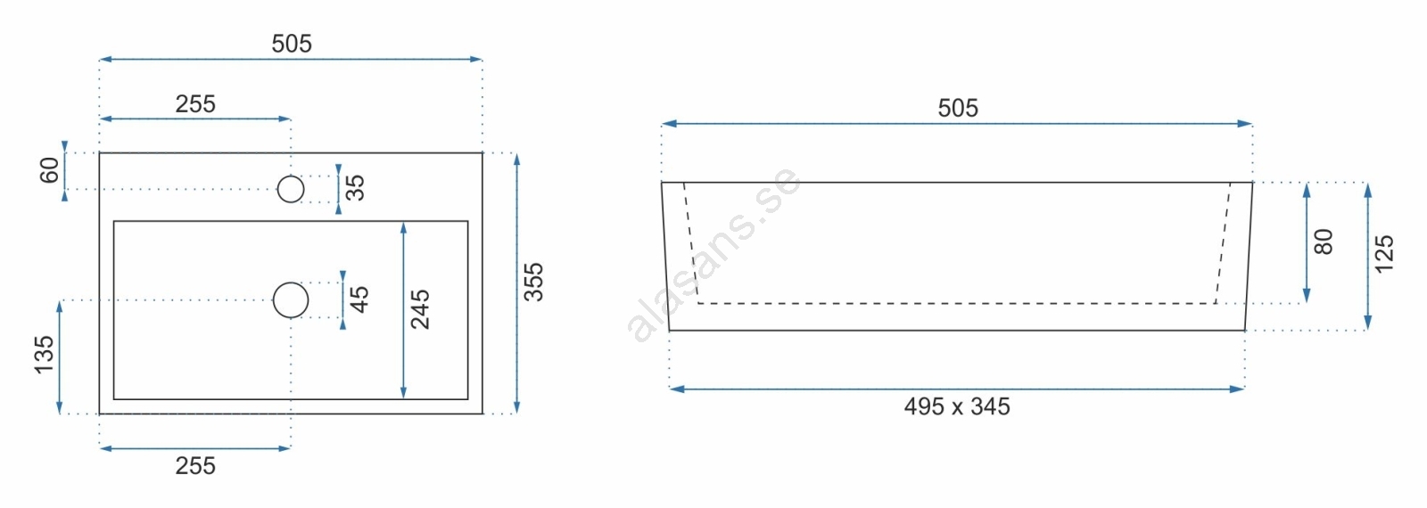REA-U5000 - Tvättställ för bänkskiva VALERIA 35,5 x 50,5 cm, keramik/blank vit | Alasans