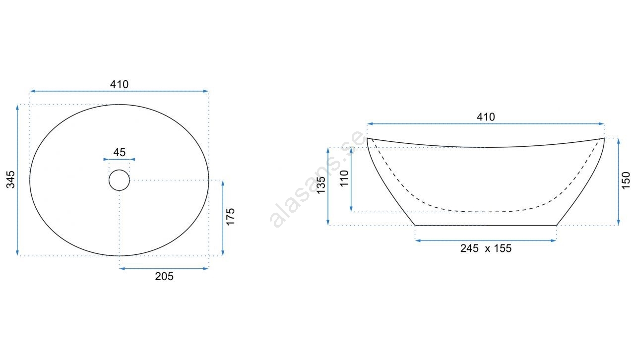 • REA-U0133 - Tvättställ för bänkskiva SOFIA 34,5 x 41 cm, keramik, blank vit