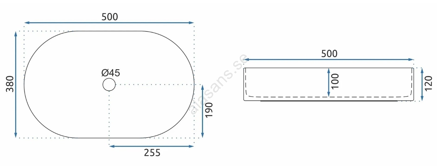 REA-U6563 - Handfat för bänkskiva NADIA 38x50 cm keramik/glansig vit | Alasans