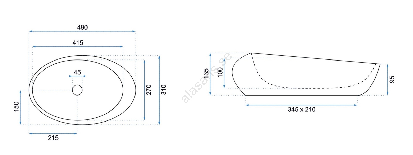 REA-U6650 - Tvättställ för bänkskiva ROXY 31x49 cm keramik/grå/marmordekor | Alasans