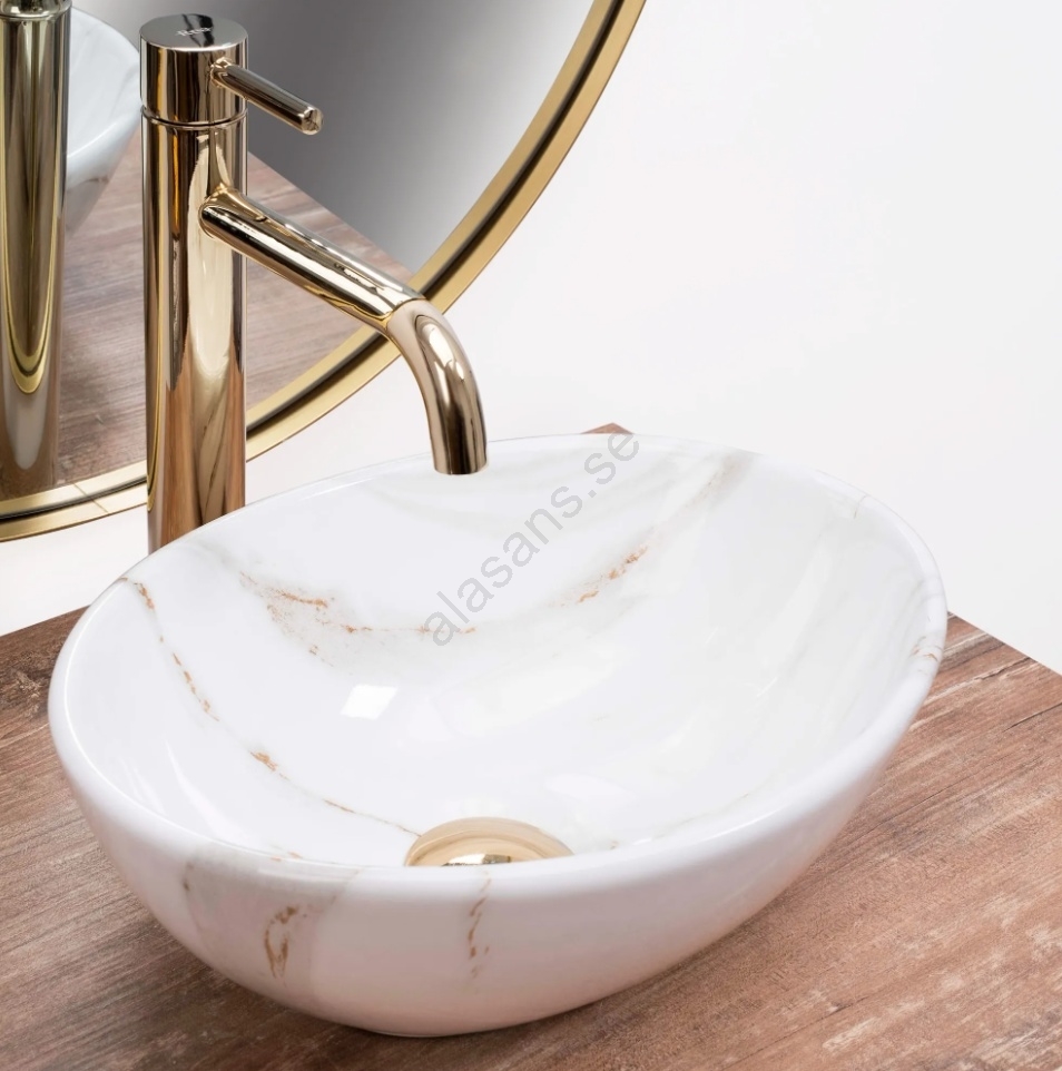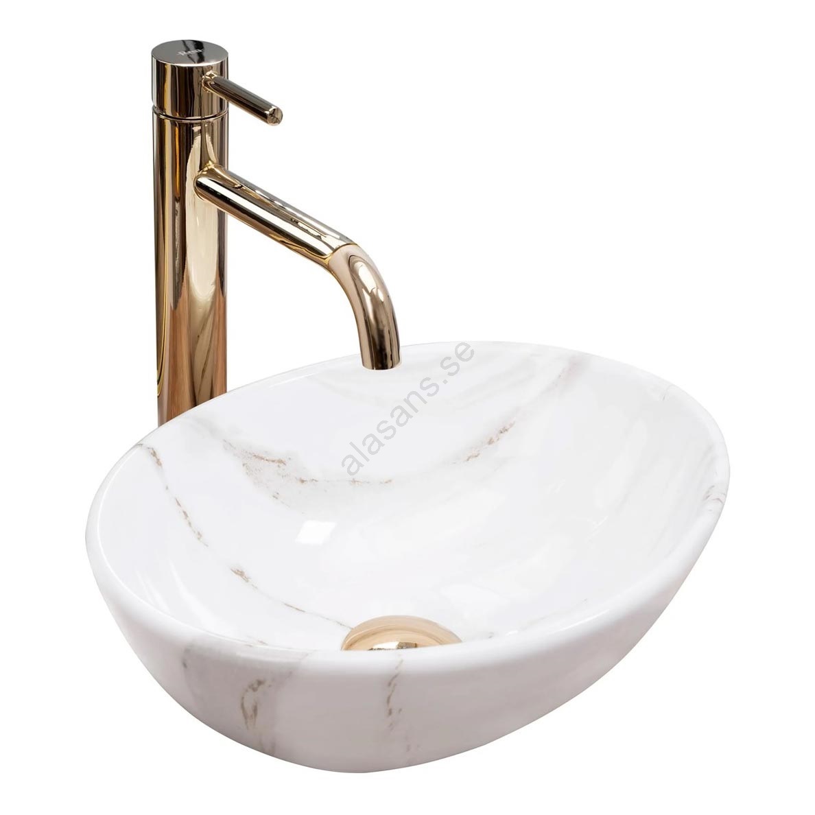 REA-U8014 - Tvättställ för bänkskiva SOFIA MINI 27x34 cm keramik/marmordekor | Alasans