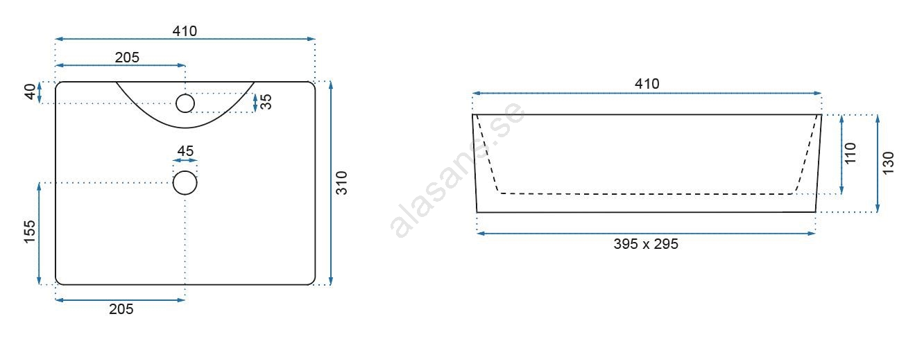REA-U8196 - Tvättställ för bänkskiva KELLY MINI 31x41 cm keramik/blank vit | Alasans