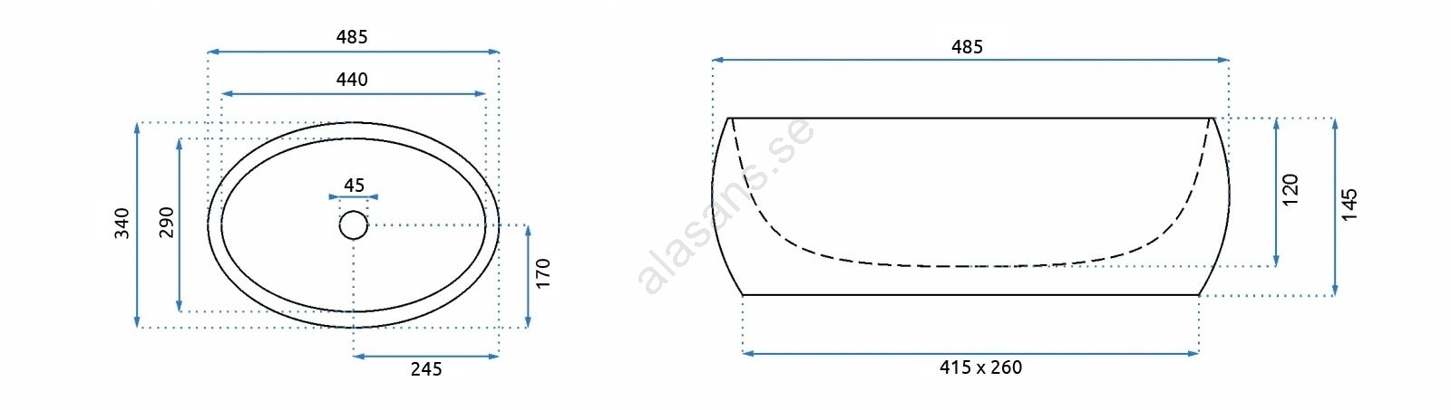 REA-U8567 - Tvättställ för bänkskiva LINDA 34x48,5 cm keramik/marmordekor | Alasans