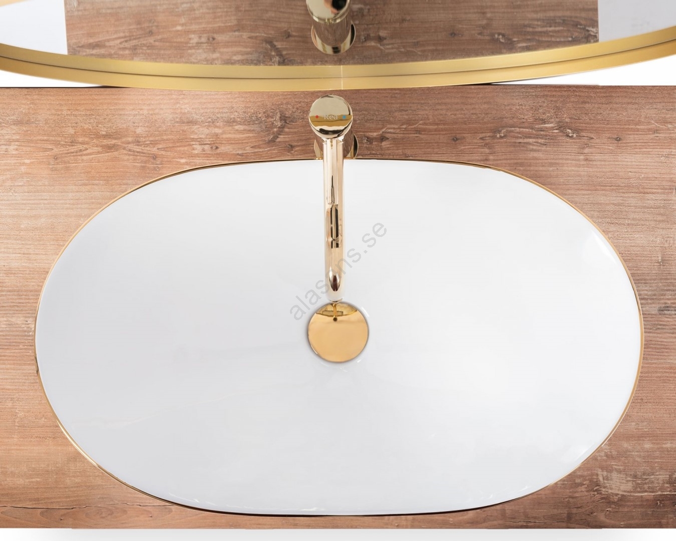 REA-U8570 - Tvättställ för bänkskiva ROYAL 36x62 cm keramik/blank vit/guld | Alasans
