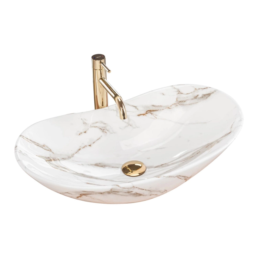• REA-U8570 - Tvättställ för bänkskiva ROYAL 36x62 cm keramik/blank vit/guld