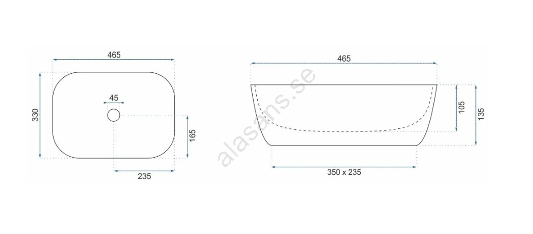 • REA-U3323 - Handfat för bänkskiva BELINDA 33,5x46,5 cm keramik/stenimitation
