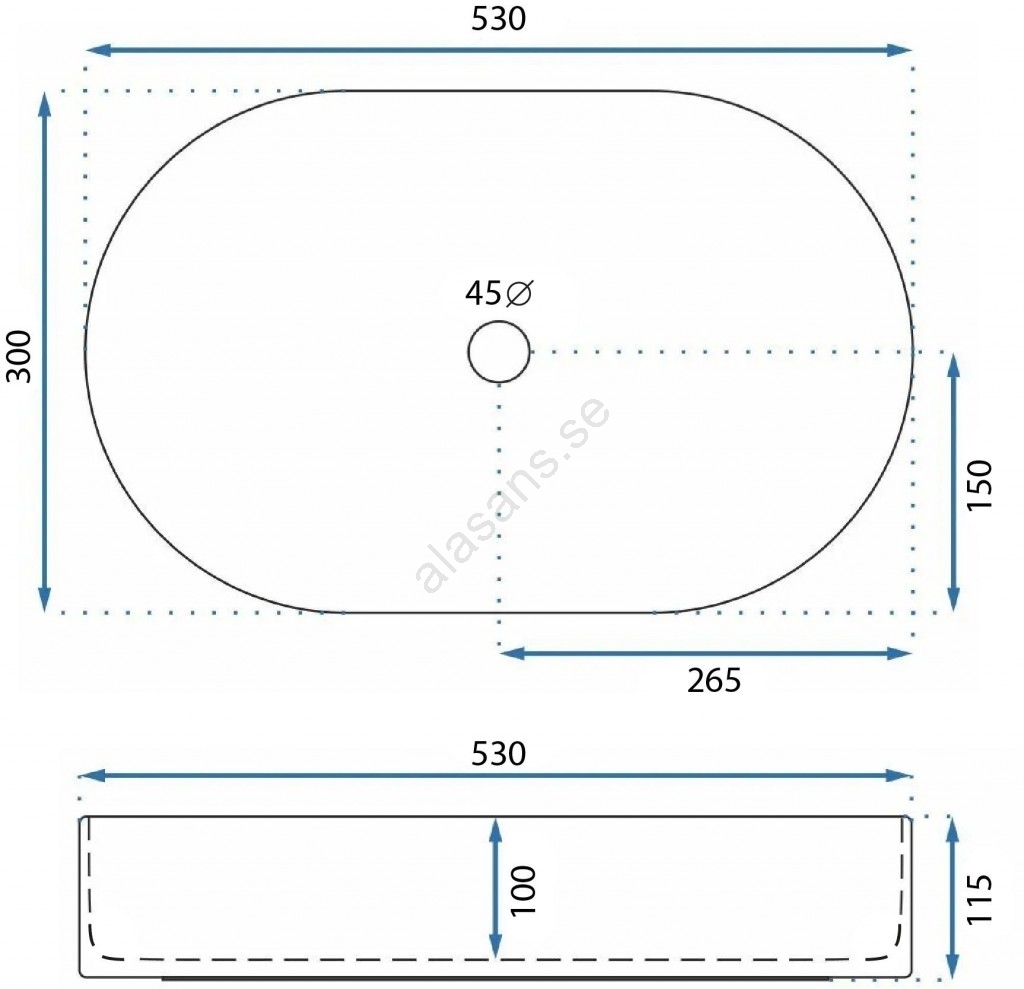 REA-U9108 - Tvättställ för bänkskiva LAYLA 30x53 cm keramik/högblank vit | Alasans