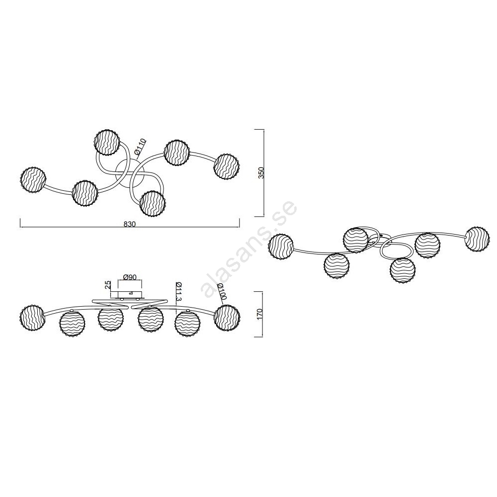 Reality - Fäst ljuskrona WIRE 6xG9/28W/230V | Alasans