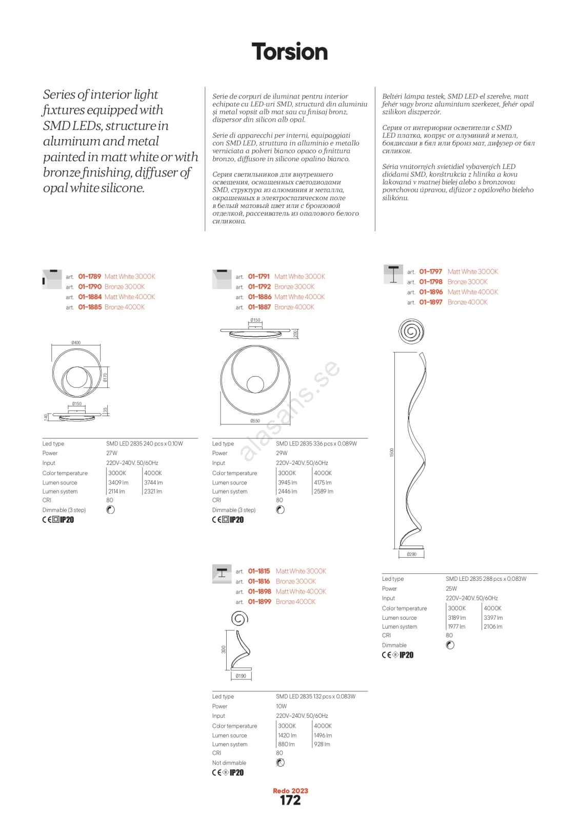 Redo 01-1886 - LED-dimbart takarmatur TORSION LED/29W/230V vit | Alasans