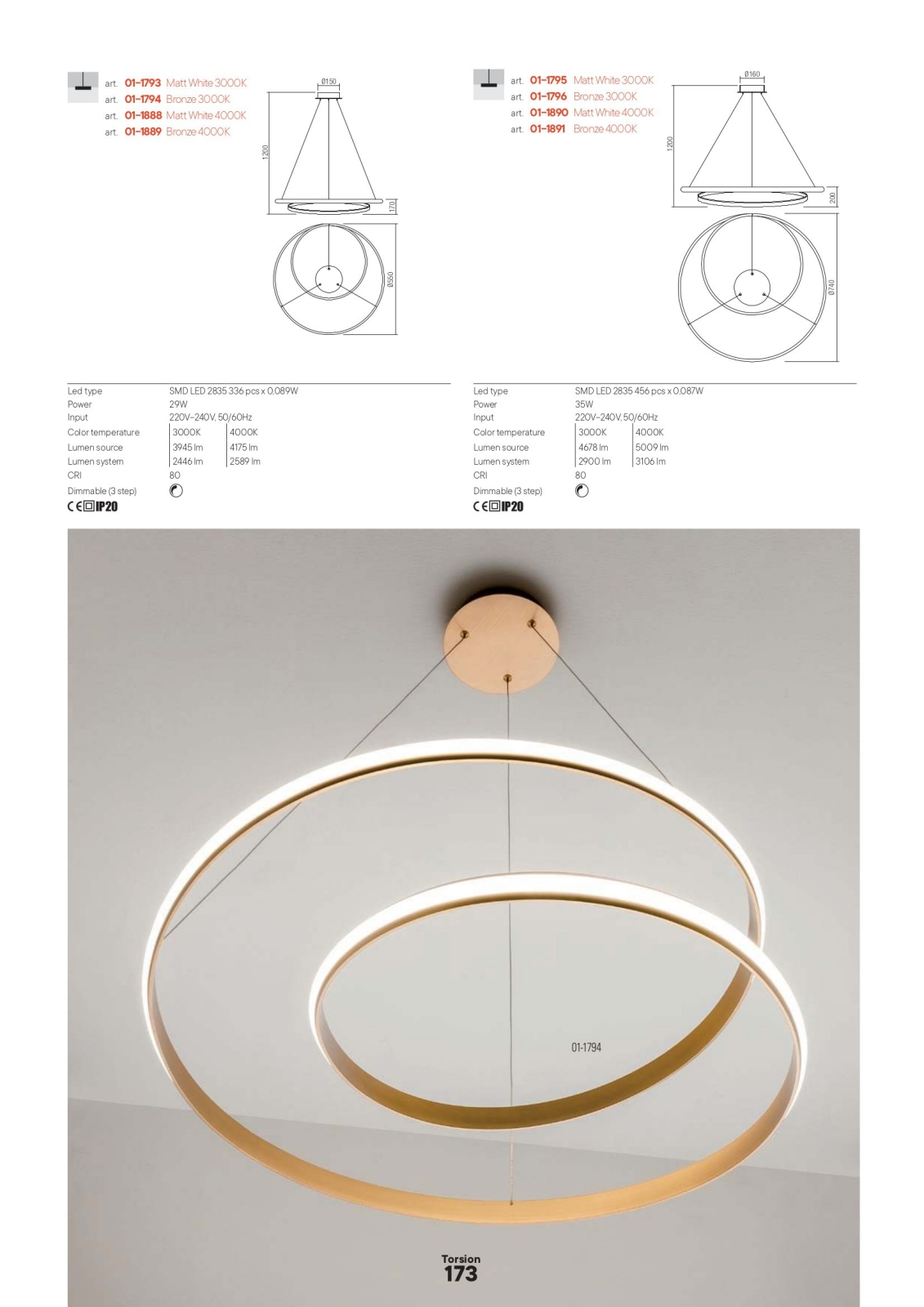 • Redo 01-1890 - LED dimbar pendellampa på vajer TORSION LED/35W/230V Ø 75 cm vit