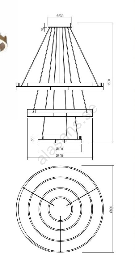 Redo 01-3182 - LED ljusreglerad ljuskrona på textilsladd CASTLE LED/80W/230V svart | Alasans