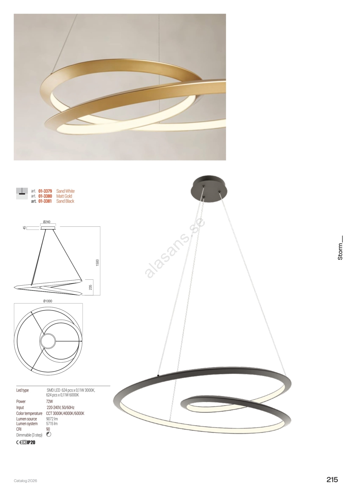 Redo 01-3376 - Dimmbar LED-pendellampa STORM LED/60W/230V Ø 80 cm vit | Alasans