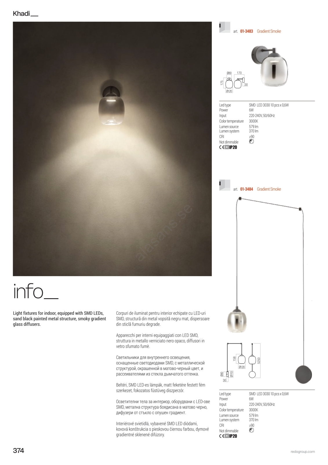 Redo 01-3483 - LED vägglampa KHADI LED/6W/230V CRI 90 svart/rökfärgad | Alasans