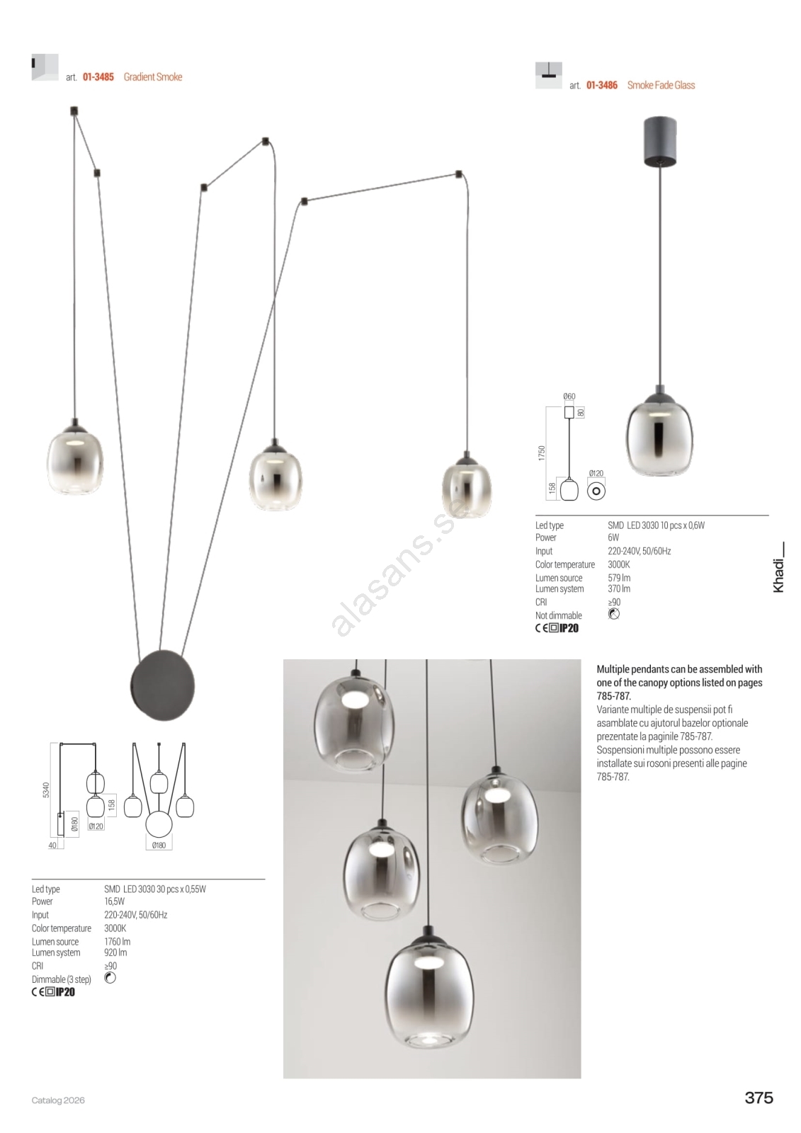 Redo 01-3486 - LED-pendel med vajer KHADI LED/6W/230V CRI90 Ø12 cm svart/rökfärgad | Alasans