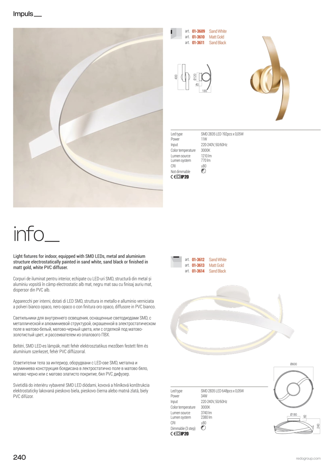 • Redo 01-3613 - Dimmbar LED-taklampa IMPULS LED/34W/230V Ø 60 cm guld