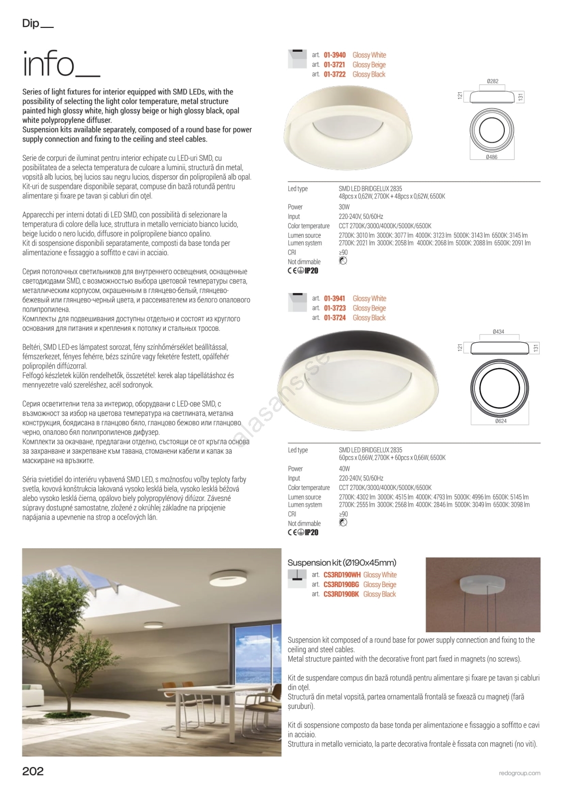 • Redo 01-3940 - LED-takarmatur DIP LED/30W/230V 2700/3000/4000/5000/6500K CRI 90 Ø 48,6 cm vit
