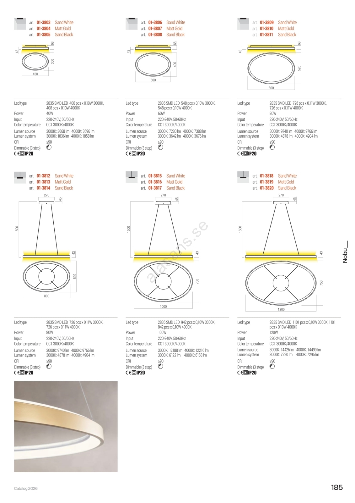 Redo 01-3810 - Dimmbar LED-takarmatur NOBU LED/80W/230V guld | Alasans