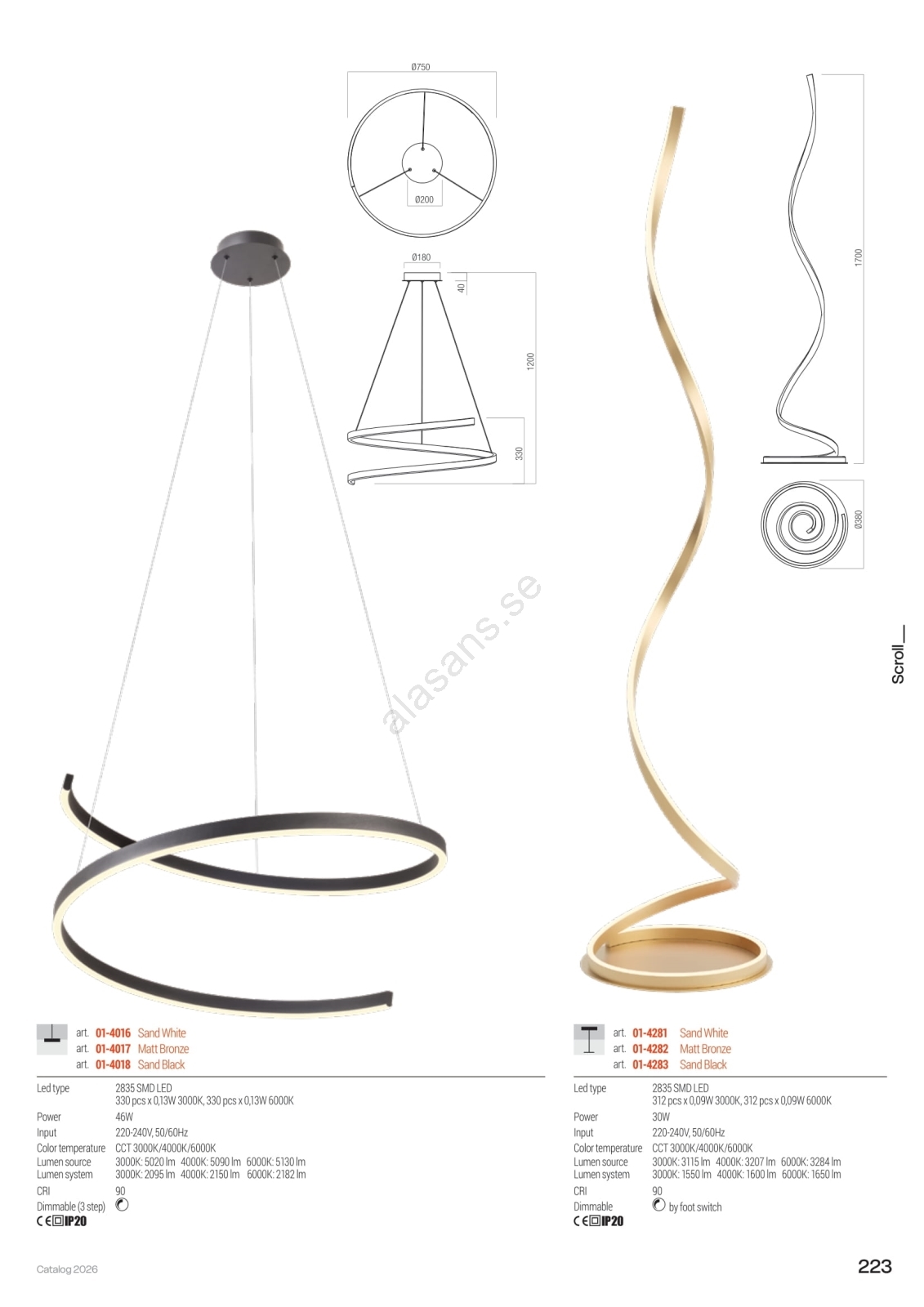 • Redo 01-4281 - LED-dimbar golvlampa SCROLL LED/30W/230V 3000K/4000K/6000K CRI 90 vit