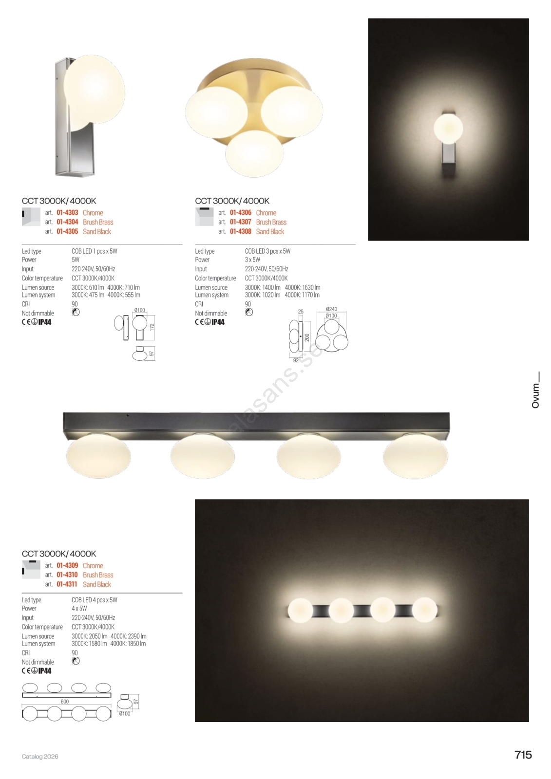 Redo 01-4308 - LED-badrumstaklampa OVUM 3xLED/5W/230V IP44 svart | Alasans