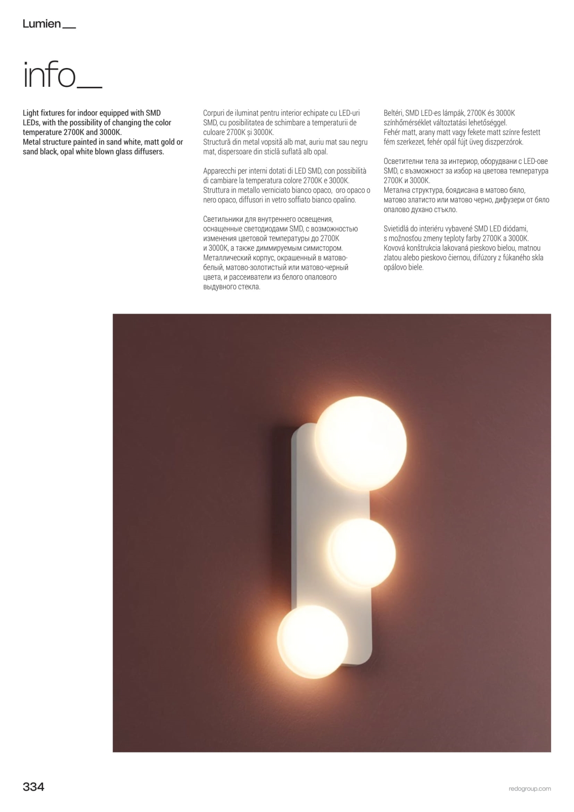 • Redo 01-4329 - LED-vägglampa LUMIEN 3xLED/18W/230V 2700/3000K CRI 90 vit/guld