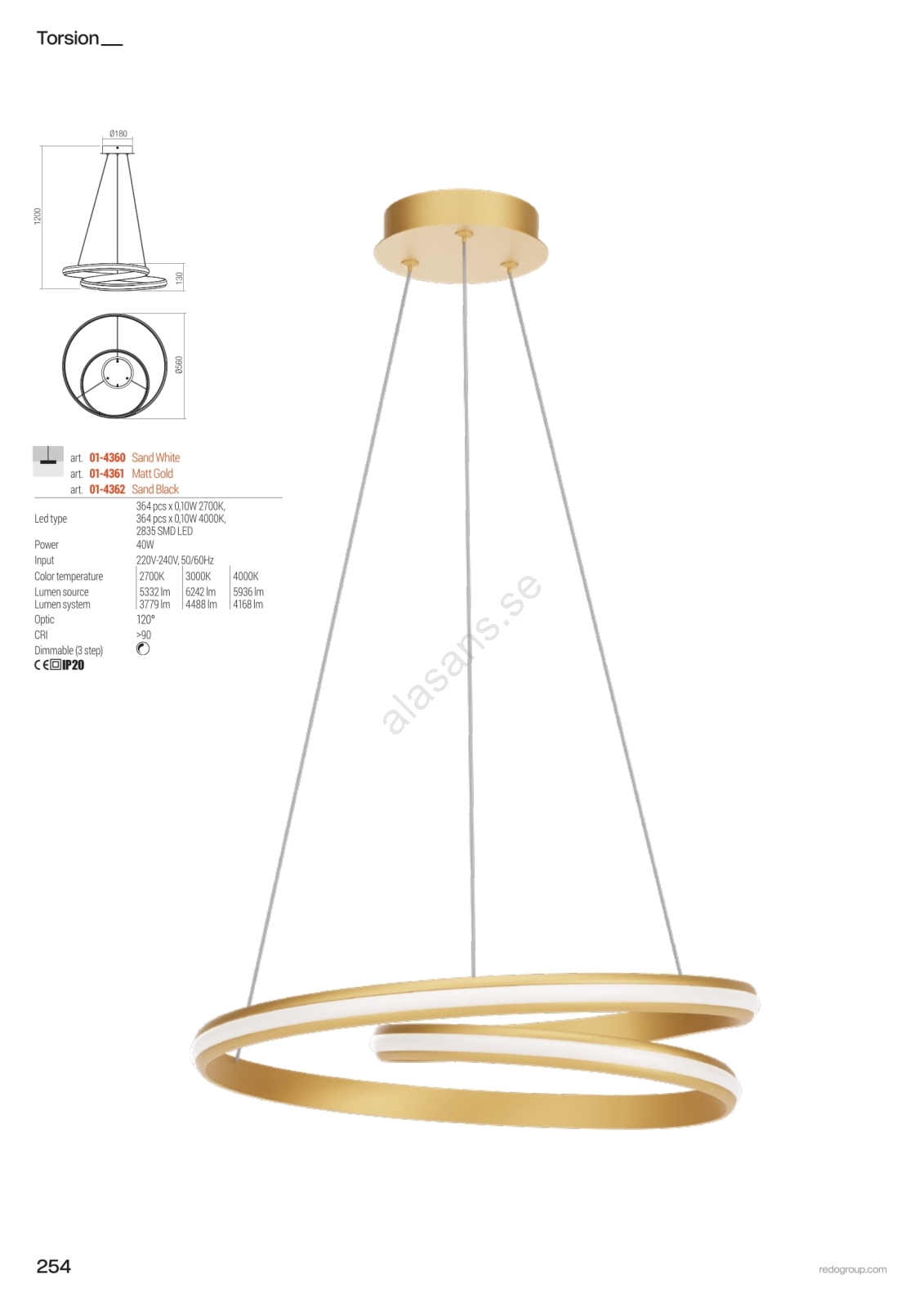 Redo 01-4362 - Dimmbar LED-pendellampa på vajer TORSION LED/40W/230V svart | Alasans