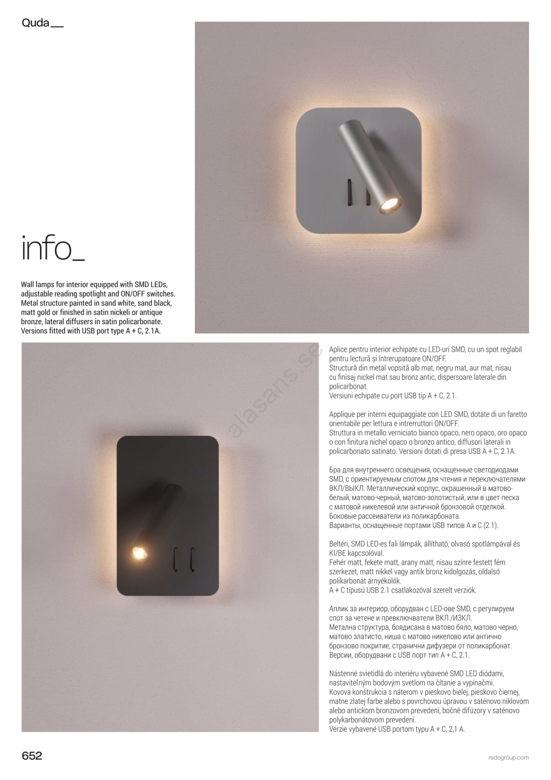 Redo 01-4473 - LED väggarmatur QUDA LED/6W/230V+LED/3W CRI 90 USB bronsfärgad | Alasans