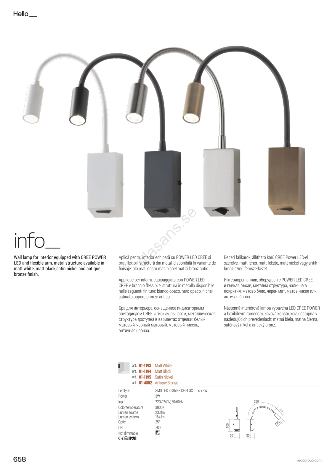 Redo 01-4802 - Flexibel LED lampa HELLO LED/3W/230V bronsfärgad | Alasans