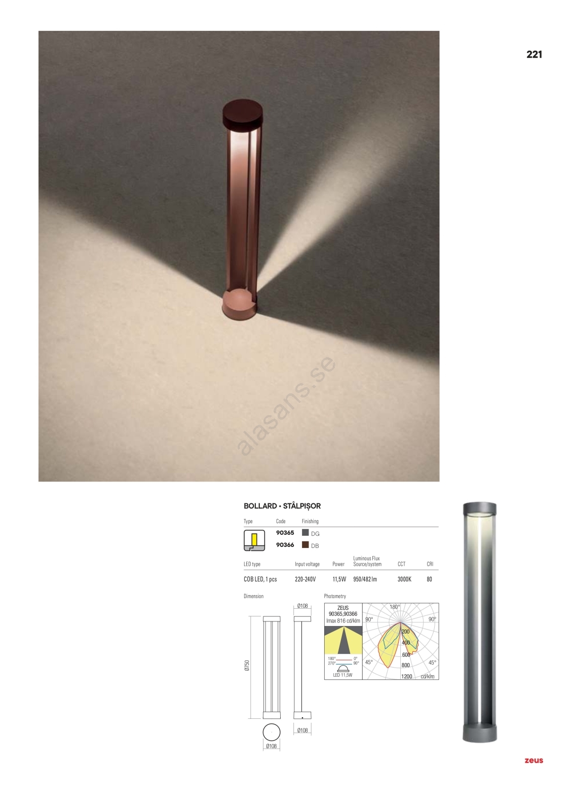 Redo 90366 - LED utomhuslampa ZEUS 11,5W/230V 3000K 75 cm IP54 brun | Alasans