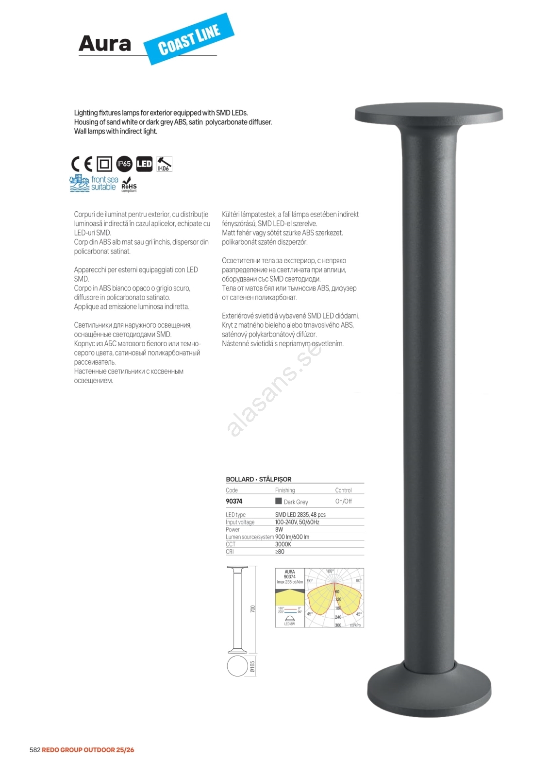 Redo 90371 - LED-utomhusväggarmatur AURA LED/8W/230V 3000K IP65 antracitgrå | Alasans