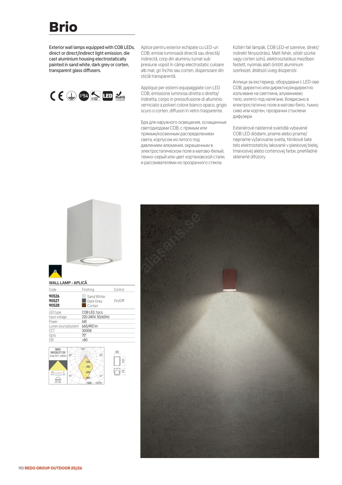 Redo 90527 - LED utomhusväggarmatur BRIO LED/6W/230V 3000K IP54 antracit | Alasans
